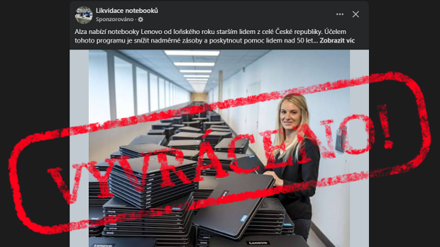 Na Facebooku se v uplynulých týdnech objevil placený příspěvek od stránky „Prodej notebooků pro důchodce“, který nabízel notebooky značky Lenovo za pouhých 70 korun. Příspěvek obsahoval fotografie desítek rozbalených notebooků a tvrdil, že se jedná o oficiální akci společnosti Alza.cz určenou pro lidi nad 50 let.